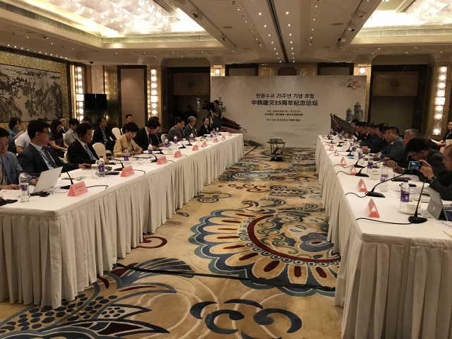 此次論壇是中韓建交25周年的系列活動(dòng)之一,主辦雙方旨在通過智庫交流進(jìn)一步推進(jìn)中韓公共外交,為兩國關(guān)系的恢復(fù)和平穩(wěn)健康發(fā)展貢獻(xiàn)積極力量。致辭嘉賓還包括韓國前駐華大使、未來研究院院長(zhǎng)辛正承,盤古智庫理事長(zhǎng)易鵬,盤古智庫學(xué)術(shù)委員會(huì)名譽(yù)主任、中共中央對(duì)外聯(lián)絡(luò)部原副部長(zhǎng)于洪君,韓國外交部公共外交大使樸銀夏等。韓中未來研究院執(zhí)行委員、前外交官丁相基,盤古智庫專家張璉瑰、朱鋒、高揚(yáng)、王棟、岳立、安剛、梁亞濱等參加了主題發(fā)言和討論環(huán)節(jié),針對(duì)過去25年間中韓關(guān)系發(fā)展歷程、目前中韓關(guān)系的癥結(jié)以及未來中韓關(guān)系發(fā)展方向等問題給出了意見與建議。