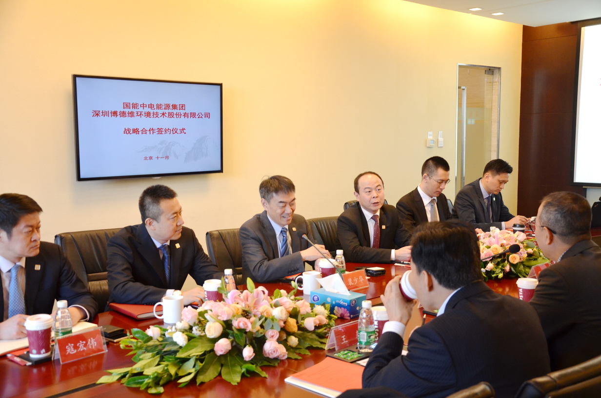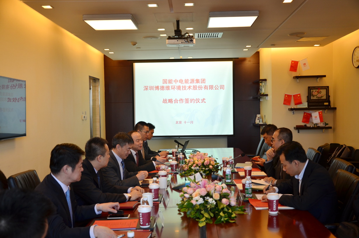 2017年11月8日上午,國能中電能源集團有限責任公司與深圳博德維環境技術股份有限公司達成戰略合作協議,并在國能中電集團總部舉行了簽約儀式。博德維總裁蕭龍、技術副總裁王秦、北京公司總經理崔艷軍,國能中電集團副董事長裴少華,國能中電集團董事、北京國能中電節能環保技術股份有限公司總裁初煒,國能中電集團副總裁、國峰清源生物能源有限責任公司總經理楊靜、北京國能中電節能環保技術股份有限公司副總裁寇宏偉,國能中電(北京)投資有限責任公司總經理王邁,國能中電能源集團廣東分公司常務副總經理張翼,北京國能中電節能環保技術股份有限公司設計院副院長黃準等領導出席了簽約儀式。