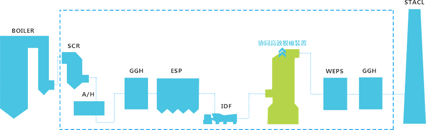 煙氣污染物協同脫除技術系統(SRS)是指在一設備內同時脫除兩種及以上煙氣污染物,或者為下一流程設備脫除污染物創造有利條件,實現煙氣污染物在多個設備中高效聯合脫除,同時實現良好的節能效果的技術。國能中電系統地研究脫硝、除塵和脫硫之間的協同關系,充分考慮各類污染物的綜合脫除效果,通過系統性的設計,達到多種污染物的協同脫除的目的,實現最優的排放指標、最好節能效果和環保裝置的運行經濟性。
